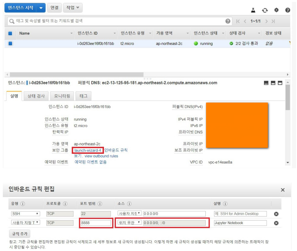 10) EC2의 Port를 Open 함 (아래의 예는 8888 Port)