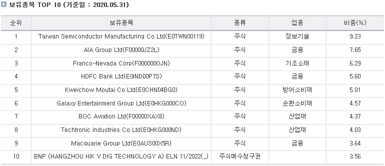 투자전략: 다양한 아이사-태평양 증시에 상장된(한국, 일본 제외) 유가증권에 분산 투자함으로써 장기적인