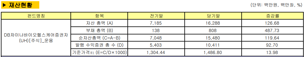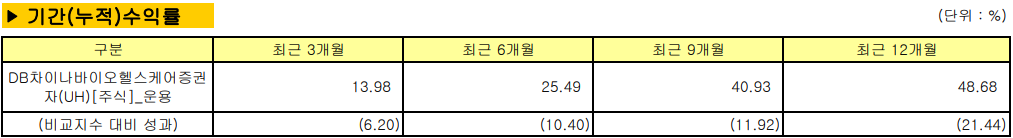 k) DB차이나바이오헬스케어증권자투자신탁(UH)[주식]C-P2E(★★★★☆) (6% 투자) : P2는 퇴직연금용 의미