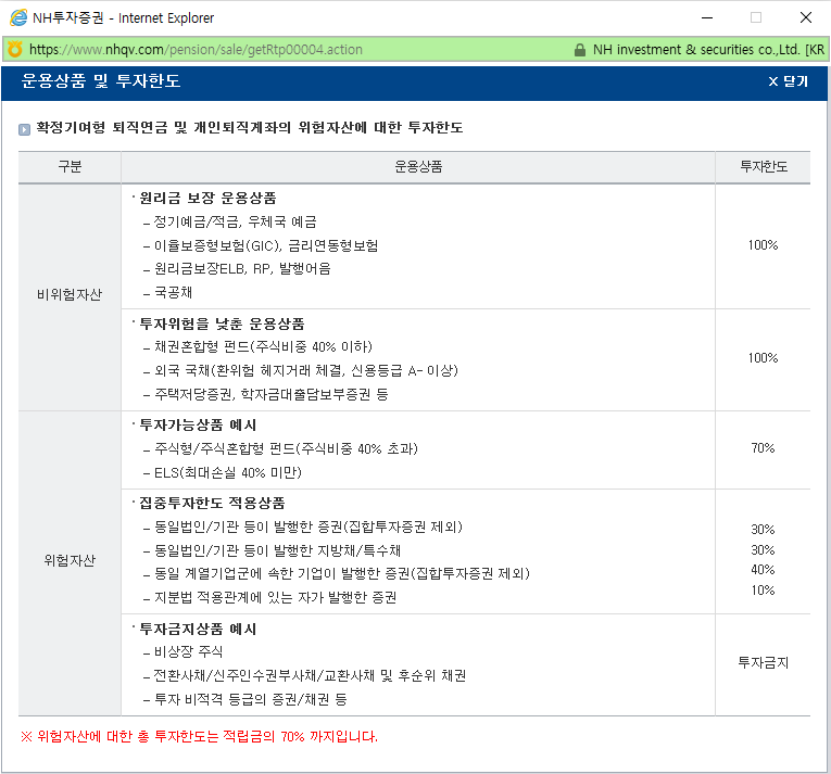 최소한 30%이상은 비위험자산에 가입하여 안전자산으로 확보하고, 나머지를 주식형 펀드 등