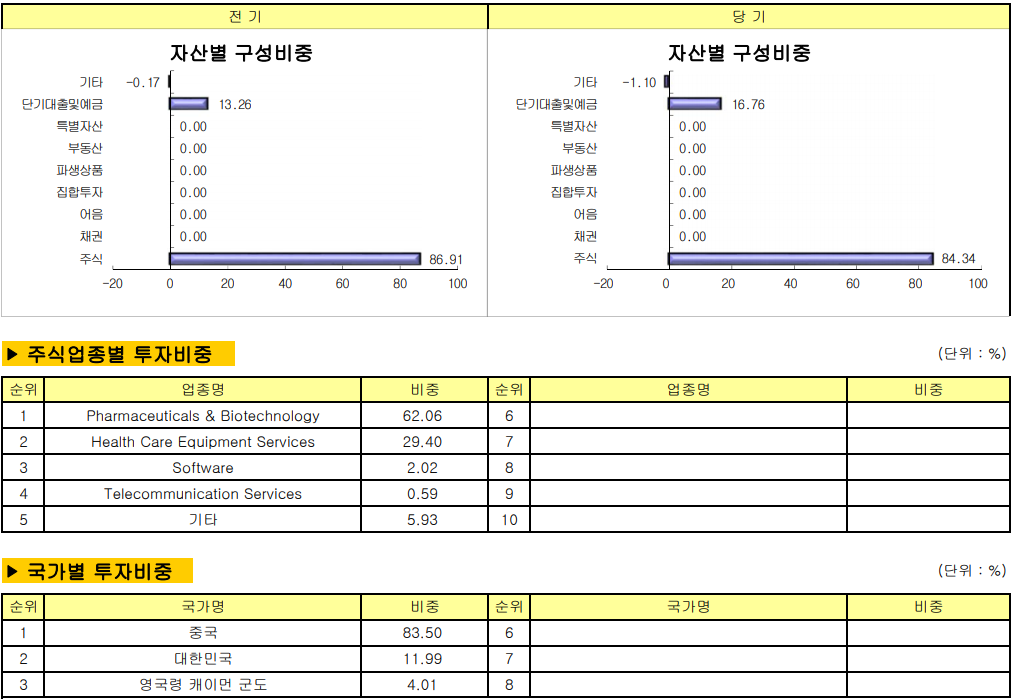 기업 또는 건강관련 제품/서비스제공 기업 등의 의료 또는 헬스케어 관련 주식에 주로 투자하여 수익 추구