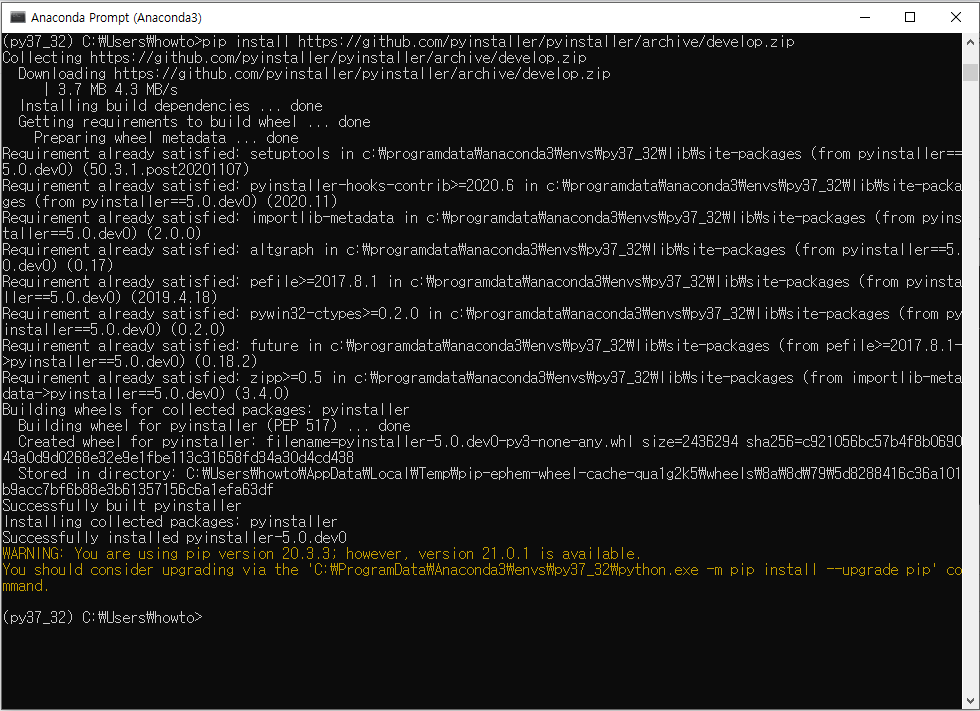다음과 같이 다시 pyinstaller를 실행해 봅니다.