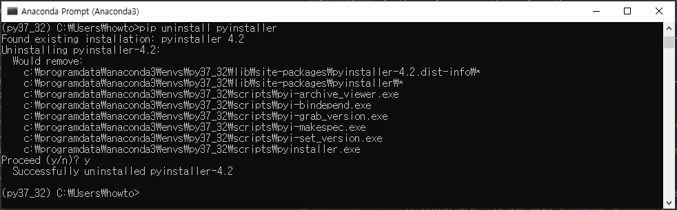 일단, pyinstaller를 삭제하고 다시 설치해 보겠습니다.