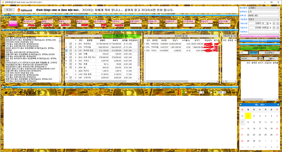 여기서 "빗썸코인거래 시작"버튼을 누르면, 빗썸으로 자동접속되면서 매수추천 및 자동매매가 시작됩니다.