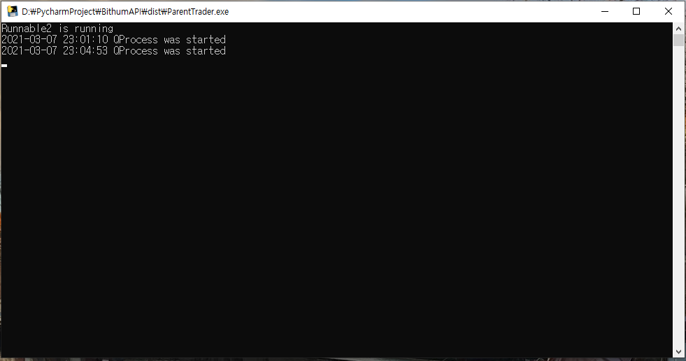 ParentTrader.exe를 실행하니, 다음과 같은 command창이 뜨면서 main창이 뜹니다.