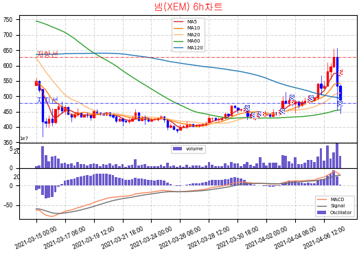 # 또한, macd도 전봉을 기준으로 감소에서 증가로 돌아설때가 현재 매수타이밍이 된다.