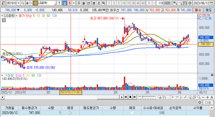 엘앤에프 1주는 차트가 계속 상승할 것 같아서, 1주를 영웅문에서 수동으로 추가 매수했습니다.