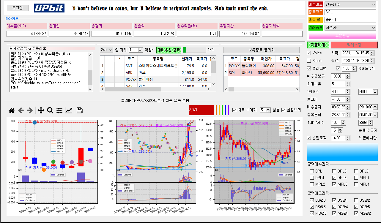 | Upbit API 자동 매매 일지 2023.11.04 (0) | 2023.11.05 |